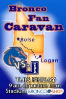 Bronco fans who are not traveling to Logan are also welcome to participate by coming to Bronco Stadium for the departure or lining up along Broadway to I-84 to cheer on the caravan. For armchair travelers, Boise State Athletics will be providing caravan updates with pictures, video and blogs through BroncoSports.com, Facebook.com/BroncoSports, Twitter.com/BroncoSports and YouTube.com/BroncoSports throughout the trip to Logan.
