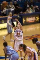 ● Second Meeting of 2009 - BOISE, Idaho (2/22/09) - Boise State defeated Nevada 75-74 in an exciting back and forth encounter in Taco Bell Arena. Boise State rallied from five-down to take a 73-70 lead with 46 seconds to play. Down 75-74 the Wolf Pack had a chance to win on their final possession with under five seconds to play, but a Dellena Criner turnover as she drove the key and the recovery by Boise State’s Rebecca Kepilino as time ran out secured the victory for the Broncos. The game saw 11 ties and 19 lead changes as neither team led by more than seven points during the game. Boise State had three players record double-figure points led by Brittany Moore with 14 followed by Courtney VanBrocklin’s 13 and Melissa Rima’s 12, Jenna Galassi had a team-best 11 rebounds. Nevada also had three in double-digit scoring led by Johnna Wards 19 while Shavon Moore added 16 and Cherlanda Franklin’s 14 points and a team-high nine rebounds.