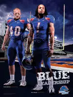 Blue Leadership, the first in a series of six 2009 Bronco football theme posters, will be available beginning this Friday night at the Stadium Bronco Shop. The Bleed Blue series release will be held in conjunction with Friday's second fall scrimmage, which is scheduled to begin at 7:30 pm at Bronco Stadium. Admission and parking for the scrimmage is free of charge.