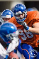 As a reward for a long fall camp, head coach Chris Petersen let the team practice in their “game” uniforms last week. "The material is lightweight and very tight," said Kyle Wilson. "I like the new design a lot, especially where we've added in some gray to highlight things." Players were able to get a feel for the new cordura material that the uniforms are made out of. The cordura stretch mesh of the jerseys is similar to a dry fit material that wicks away moisture to help keep the jersey lightweight, while the durable fabric is resistant to tearing and ripping.