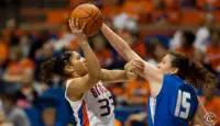 Most of the Cowgirl's offense came from Chaundra Sewell who had 27 points and 15 rebounds. The Broncos were able to counter her efforts with stifling defense after the break, holding Wyoming to 32 percent shooting.