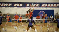 BOISE, Idaho - Boise State volleyball opened its four match homestand with a convincing straight-set victory 25-9, 25-16, 25-23, over Eastern Washington Wednesday night in Boise. The Broncos hit .326 percent against the Eagles who were held to .099 percent on the night. Alyssa Gammel led Boise State with 12 kills while hitting a career-high .526 percent, followed by Liz Harden who hit a season-high .438 percent with 10 kills. The victory is the second consecutive straight-set victory for the Broncos who improved to 3-4 on the year.