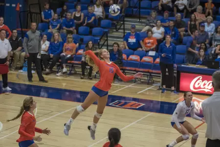 Sophomore Emily Sullivan earned the service ace to give Boise State their first lead of the set, 21-20.