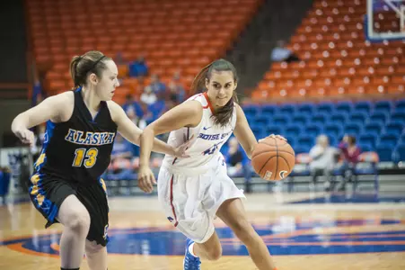 BOISE, Idaho - With Boise State leading 60-59 midway through the fourth quarter freshman Riley Lupfer nailed three-consecutive 3-pointers to lift the Broncos to a 10-point advantage with 3:04 left. Boise State never relinquished the double-digit lead the rest of the way as the Broncos closed on a 15-2 run to record a 75-61 exhibition win over Alaska Sunday afternoon in Taco Bell Arena.