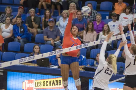 Boise State hit 21.9 percent against UC Davis for 57 kills off 52 assists, in addition the Broncos had eight service aces, 72 digs and nine blocks. UC Davis countered at 14 percent hitting for 40 kills on 35 assists to go with five aces, 62 digs and 11 blocks.
