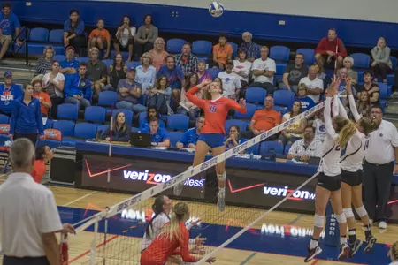 "I am very proud of the way our team fought at times tonight," said head coach Shawn Garus. "The second set was something we need to learn from but the fourth and fifth sets were impressive. Laney Hayes and Maddy O'Donnell made some big adjustments throughout the match to help us earn the critical road victory. I'm excited to get home for two big matches next week."