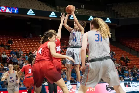 It was the Brooke Pahukoa show in the first 20 minutes as she kept the Broncos in the contest by scoring over 50 percent of the team's points herself with 16 at halftime. Pahukoa finished the game with her fifth 20-plus point game recording a team-high 21 on 6-of-15 shooting from the floor with two 3-pointers and went a perfect 7-of-7 from the free-throw line.