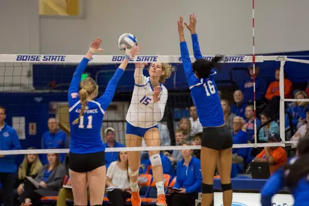RENO, Nev. - Boise State closed the regular season on the road in Reno where the Broncos recorded their fourth-straight victory by sweep in a 25-22, 25-23, 25-17 win over the Nevada Wolf Pack. Sierra Nobley, Sabryn Roberts and Janell Walley combined for 45 of the Broncos' 55 kills and each hit over 38 percent to lead Boise State to the win.