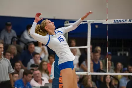 LARAMIE, Wyo. - Boise State senior Sierra Nobley recorded 20 points at Wyoming to set the Mountain West career record, but it was not enough to lead the Broncos past the Cowgirls in a 3-1 loss at Laramie. Boise State struggled hitting the ball against Wyoming finishing at 16.2 percent, while the Cowgirls hit 21.9 percent. The 25-19, 21-25, 29-27, 25-19 loss drops the Broncos to 13-12 overall and 6-7 in league play with a trip to 20th-ranked Colorado State looming on Saturday.