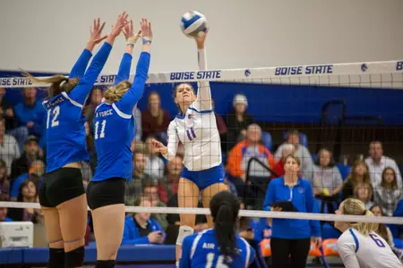 Boise State did a good job spreading the attack around against the Falcons as Sierra Nobley led the team with 12 kills, followed closely by Sabryn Roberts and Janell Walley with 10 each. The trio accounted for 32 of the team's 46 kills.