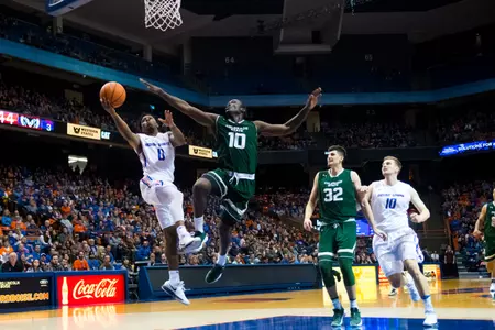 Marcus Dickinson scored a career-high 16, Alex Hobbs also scored 16 with four assists, Chris Sengfelder had 13 points and Zach Haney 12 for the Broncos (11-2, 1-0).