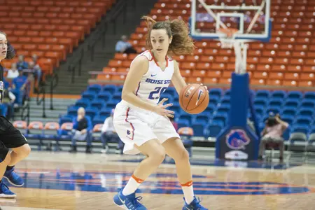 Trailing 29-19 with 8:49 to go in the third period, Lupfer hit the first of two second half treys to spark the decisive 17-2 run. Over the next 5:38 the Broncos' defense clamped down and held the Cowgirls to two points as Boise State ran up and down the floor with high energy.