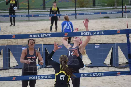 BOISE, Idaho - Boise State beach volleyball split a pair of home matches Friday afternoon in Boise falling 3-2 to Sacramento State before regrouping to down Oregon 3-2. Boise State was led by Sierra Nobley and Sabryn Roberts who won both of their matches at the number three position. Earning splits on the day were Maddy O'Donnell and Maddi Osburn at No. 1 pair, Janell Walley and Emily Sullivan at No. 2 pair, as well as the tandem of Jaymee-Lee Bulda and Laney Hayes on court four. The split moves the Broncos to 4-2 overall with a road trip to the Stanford Tournament on the slate for next weekend.