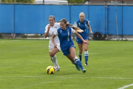 Sherle used an opportune moment to steal a pass from the Southern Utah defense and added a couple touches for a 10-yard shot that whistled past the Thunderbird keeper to make it 2-1 in the 41st. The third Bronco goal was the product of a nice pass from Kynett that set up Blaser for a shot from a few yards out that SUU's Caylie Hartman initially made a nice save on, but was unable to keep the Boise, Idaho native from blasting home the rebound to increase the lead to 3-1 at the half.