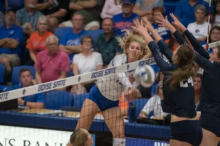 BOISE, Idaho - Sierra Nobley recorded a season-high 23 kills, but it was not enough to carry the Broncos past 10th-ranked BYU Thursday night in Bronco Gym as they fell in a tough three-sets 25-19, 26-24, 26-24.