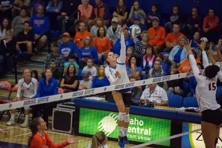 The Broncos finished the contest hitting 23.9 percent while holding the Lobos to a -2.1 percent, a season-low for a Boise State opponent. Credit the Broncos' defense for a lot of UNM's hitting problems as the blue and orange tallied a season-high 17 blocks on the night.