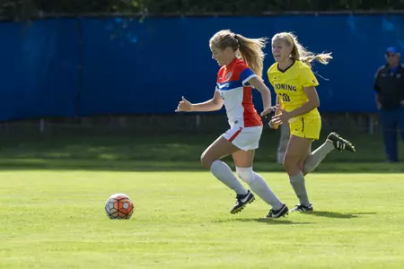 The Broncos were the aggressors throughout the first half, as Sarah Taylor started out the game with a good chance in the 2nd minute that just went high over the net. While the Broncos' relentless pursuit in the first 45 minutes didn't result in a goal, it produced the turning point in the game.