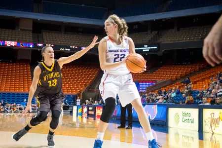 The Broncos (8-7, 2-2 MW) opened 4-of-7 from the field and led the Cowgirls, 8-5, after Marta Hermida's third basket with 5:56 left in the opening quarter. But things would stall for the Boise State offense for the remainder of the half, as the Broncos managed just one more field goal the rest of the first quarter, and went just 3-for-16 in the second. Wyoming, meanwhile, hit its first five attempts from 3-point range, led by three from Marta Gomez and two from Liv Roberts, and took advantage of Bronco foul trouble, going 7-for-10 from the line, to spur a 28-10 stretch over the final 15 minutes of the half and take a 32-18 lead.