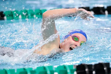 Junior Cody Evans turned in a 50.18 to place seventh in the 100 freestyle, while Emmie Jennings placed 12th clocking a 50.56 and Ally Kleinsorgen 16th after swimming a 50.81.