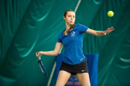 In doubles the Broncos battled, but lost the doubles point as the No. 1 duo of Wiktoria Nosek/Anja Dokic fell 6-1 to Barbora Michalkova/Melisa Ates. Then at No. 3 doubles, Vanessa Timm/Hanna Kantenwein fell to Michaela Bayerlova/Aneta Miksovska, 6-1 to drop the doubles point.